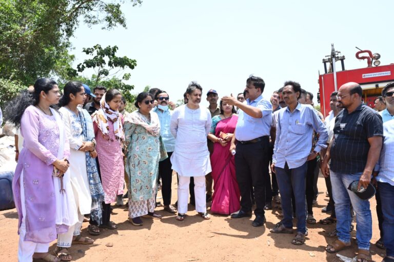 कुडाळ सांगिर्डेवाडी येथील नगरपंचायतीच्या कचरा डेपोला लागलेल्या आगीची आमदार निलेश राणे यांनी केली पाहणी