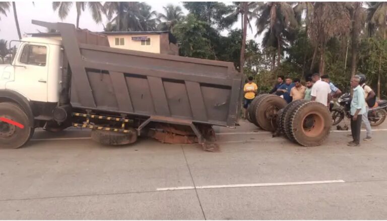 मुंबई गोवा महामार्ग, नॅशनल हायवेवर पिंगुळी साई मंदिर समोर विरुद्ध दिशेने जात असलेल्या डंपरची मागची दोन चाके तुटून डंपर पासून अलग झाली मात्र डंपर चालकाने आवाज झाल्यानंतर तात्काळ डंपर थांबून प्रसंगावधान राखले यात डंपरचे मोठे नुकसान झाले असून कोणतीही जीवितहानी…