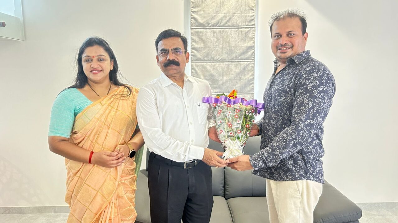 कुडाळ : जिल्हाधिकारी अनिल पाटील यांनी कुडाळच्या नगराध्यक्षा प्राजक्ता शिरवलकर यांच्या घरी आज सदिच्छा भेट दिली. सिंधुदुर्ग जिल्ह्याचे जिल्हाधिकारी अनिल पाटील आज मुलांच्या स्वागतोत्सवानिमित्त कुडाळ येथील कुंभारवाडी शाळेमध्ये आले होते. यावेळी त्यांनी कुडाळच्या नगराध्यक्षा प्राजक्ता शिरवलकर यांच्या घरी सदिच्छा भेट दिली. यावेळी नगराध्यक्षा प्राजक्ता शिरवलकर यांनी शहराच्या विकासाबाबत विविध संकल्पना जिल्हाधिकाऱ्यांकडे मांडल्या. या प्रसंगी शिवसेना नेते आनंद शिरवलकर, उपजिल्हाप्रमुख अरविंद करलकर, नगरसेविका अक्षता खटावकर, नगरसेवक उदय मांजरेकर, लवू कदम आदी उपस्थित होते.