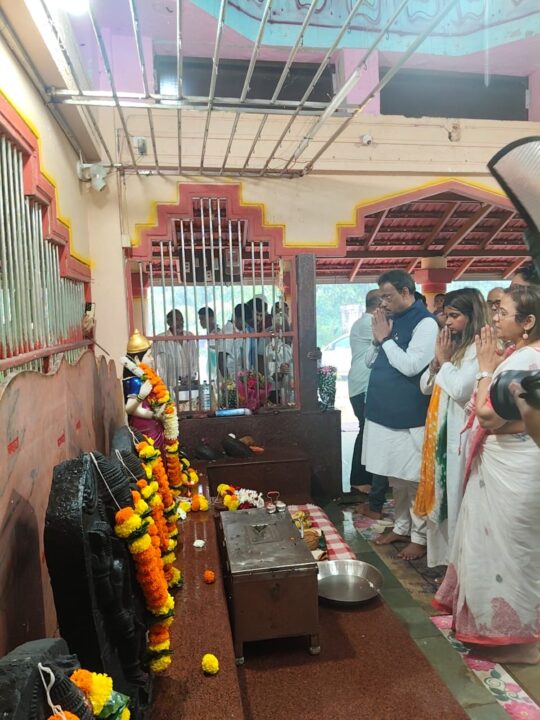 कणकवली : कोकणातील जागृत देवस्थान आणि पाच शेर पाणी जाळणारी म्हणून जिची ख्याती आहे अशी सिंधुदुर्गातील प्रसिद्ध देवस्थान श्री देव गंगो अनभवानी मातेच्या दर्शनाकरिता राष्ट्रीय सरचिटणीस विनोदजी तावडे यांनी डामरे येथे येत सपत्नीक दर्शन घेतले. यावेळी त्यांच्यासोबत महाराष्ट्र राज्य भाजपा प्रदेश उपाध्यक्ष अतुल काळसेकर सिंधुदुर्ग जिल्हा भाजपाध्यक्ष प्रभाकर सावंत राज्य परिषद सदस्य राजू राऊळ कणकवली तालुका अध्यक्ष मिलिंद मेस्त्री, इत्यादी उपस्थित होते.