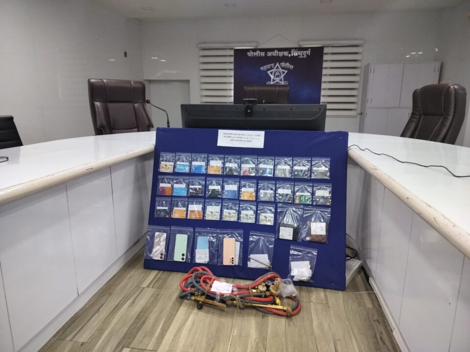 गुन्हयाच्या घटनास्थळी मिळुन आलेला मुद्देमाल व तांत्रीक विष्लेषणाव्दारे पाहिजे आरोपीत हे इंदापुर जि. पुणे येथील असल्याचे उघड झाले. त्यानंतर त्याठकाणी तात्काळ कुडाळ पोलीस ठाणेचे सहा. पोलीस निरीक्षक, जयदीप पाटील व पोलीस अंमलदार यांना पुणे इंदापुर येथे रवाना केले. त्याठिकाणी गुन्हयातील आरोपी १) किरण बाळु चव्हाण वय-29 वर्षे, रा. वनगळी ता. इंदापुर, जि. पुणे 2) विजय दिनानाथ जाधव वय 19 वर्षे, रा. वनगळी ता. इंदापुर, जि. पुणे 3) मारुती गोविंद सुरवसे वय-19 वर्षे, सध्या रा. वनगळी ता. इंदापुर, जि. पुणे, मुळ रा. कोराळ ता. उमरगा, जि. उस्मानाबाद 4) समाधान शहाजी यादव वय-27 वर्षे, रा. बाबुळगाव ता. इंदापुर, जि. पुणे 5) औदुंबर राजकुमार शेलार वय-27 वर्षे, रा. पळसदेव ता. इंदापुर जि. पुणे यांना त्यांचे राहते घरातुन ताब्यात घेण्यात आलेले आहे. त्यांचेपैकी आरोपी किरण बाळु चव्हाण याचे अंगझडतीमध्ये SBI बँकेची 12 ATM कार्ड, HDFC बँकेची 03 ATM कार्ड, कर्नाटका बँकेची 02 ATM कार्ड, युनियन बँकेची 02 ATM कार्ड, कॅनरा बँकेची 03 ATM कार्ड तसेच बँक ऑफ महाराष्ट्र बँक ऑफ इंडीया, आयडीबीआय बँक, एक्सीस बैंक, कोटक बँक यांची प्रत्येकी 01 ATM असे एकुण 27 ATM कार्ड, 02 मोबाईल जप्त करण्यात आलेले आहेत. आरोपी क्रमांक 04 समाधान शहाजी यादव याचे अंगझडतीत 01 मोबाईल व आरोपीत क्रमांक 05 औदुंबर राजकुमार शेलार याचे अंगझडतीत 01 मोबाईल जप्त करण्यात आलेला आहे. तसेच आरोपीत यांनी गुन्हयात वापरलेली एक ईटींगा कार क्रमांक MH 12 XQ 2697, 01 पल्सर मोटार सायकल (रजीस्ट्रेशन नंबर नाही), एक ऑक्सीजन गैस सिलेंडर, एक LPG सिलेंडर व गॅस कटर असे जप्त करण्यात आलेले आहेत.