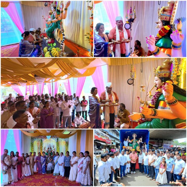 सालाबादप्रमाणे कणकवली तालुका शिवसेना (उद्धव बाळासाहेब ठाकरे) पक्षाच्या वतीने आज घटस्थापने दिवशी दुर्गामातेची प्रतिष्ठापना मोठ्या उत्साहात करण्यात आली. माजी आमदार वैभव नाईक यांनी सपत्नीक देवीचे विधिवत पूजन करून शिवसेना पदाधिकारी व शिवसैनिकांच्या उपस्थितीत देवीची आरती करण्यात आली. शिवसेनेच्या वतीने गेली १४ वर्षे नित्यनेमाने दुर्गामातेची प्रतिष्ठापना व विविध कार्यक्रमांनी नवरात्रोत्सव साजरा करण्यात येतो. यावर्षी देखील घटस्थापनेपासून ०३ ऑक्टोबर २०२५ पर्यंत देवीची नित्यपूजा,आरती, विविध सांस्कृतिक,धार्मिक,मनोरंजनाचे कार्यक्रम आयोजित करण्यात आले आहेत. देवीसाठी आकर्षक असा दरबार व देवीच्या आसनाला आकर्षक फुलांची सजावट तसेच विद्युत रोषणाई करण्यात आली आहे.