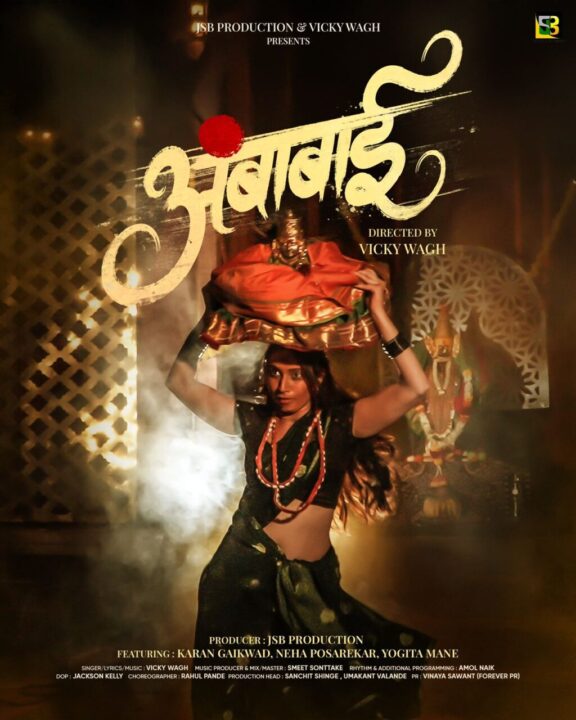 अवधूत गुप्ते यांच्या “पावन जेवला काय” आणि सबसे कातिल गौतमी पाटीलच्या “चीज लई कडक” या सुपरहिट गाण्यांचे दिग्दर्शन केलेल्या दिग्दर्शकाचे नवीन गाणं आपल्या भेटीला आले आहे. नवरात्रोत्सवा निमित्त जेएसबी प्रोडक्शन प्रस्तुत आणि विकी वाघ दिग्दर्शित “अंबाबाई” गाणं नुकतच प्रदर्शित झालं आहे. या गाण्याला प्रेक्षकांची पसंती मिळतं आहे. करण गायकवाड, नेहा पोसरेकर, योगिता माने, संतोष पाखरे आणि विकी वाघ यांनी या गाण्यात प्रमुख भुमिका साकारली आहे. विकी वाघ याने हे गाण लिहीलं असून या गाण्याची गीतरचना, संगीत आणि दिग्दर्शन ही केले आहे. या गाण्याची निर्मिती जेएसबी प्रोडक्शन यांनी केली आहे. हे गाणं कोल्हापूर येथे चित्रीत करण्यात आले आहे.