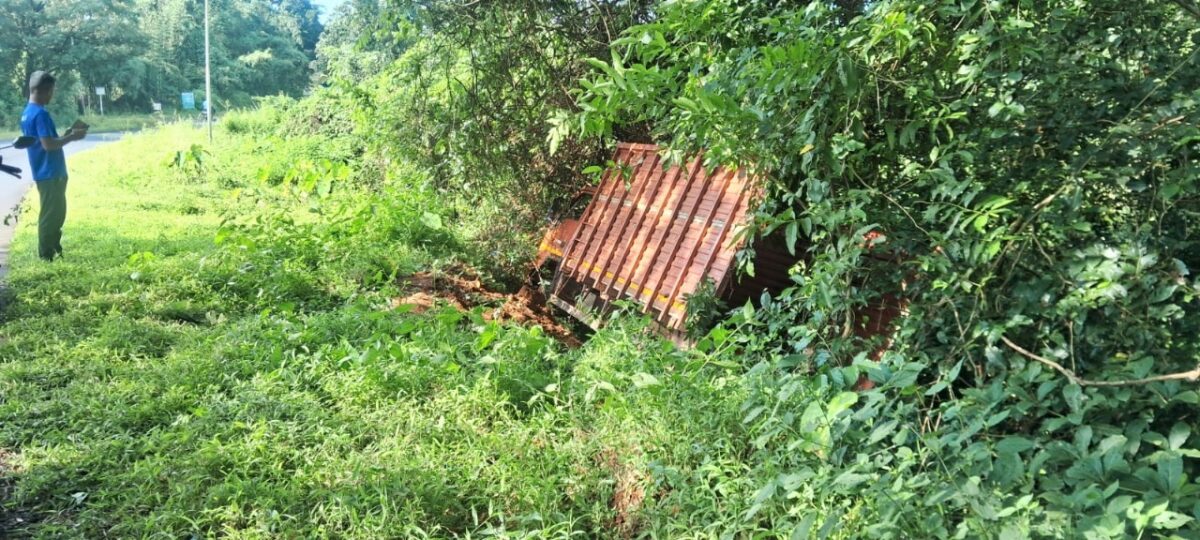दोडामार्ग: दोडामार्ग-वीजघर राज्यमार्गावरील आवाडे येथे एक आयशर मालवाहू गाडी (क्रमांक GA04 T 4708) नाल्यात घसरून अपघातग्रस्त झाली आहे. या अपघातात गाडीचे मोठ्या प्रमाणावर नुकसान झाले आहे.