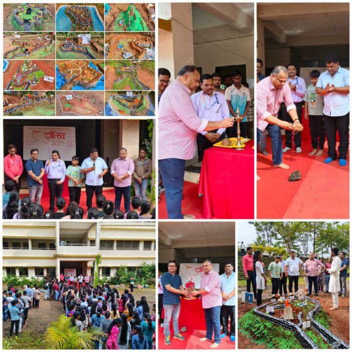 छत्रपती शिवाजी महाराजांच्या १२ गडकिल्ल्यांना युनेस्कोकडून जागतिक वारसा स्थळ म्हणून मान्यता मिळाली असून त्यापार्श्वभूमीवर विद्यापीठाच्या निर्देशानुसार  शुक्रवारी विजयराव नाईक कॉलेज ऑफ फार्मसीच्या वतीने 'दुर्गोत्सव २०२५' साजरा करण्यात आला. फार्मसी कॉलेजमधील  विद्यार्थ्यांकडून सिंधुदुर्ग, विजयदुर्ग, रायगड, राजगड, प्रतापगड, पन्हाळा, शिवनेरी, लोहगड, साल्हेर, सुवर्णदुर्ग, खांदेरी, जिंजी  या १२ गडकिल्ल्यांच्या हुबेहूब, रेखीव आणि आकर्षक अशा प्रतिकृती कॉलेज परिसरात साकारण्यात आल्या. या उपक्रमाचे उद्घाटन माजी आमदार वैभव नाईक यांच्या प्रमुख उपस्थितीत उद्योजक अजित राणे यांच्या हस्ते करण्यात आले. यावेळी त्यांनी गडकिल्ल्यांच्या प्रतिकृतीची पाहणी केली.