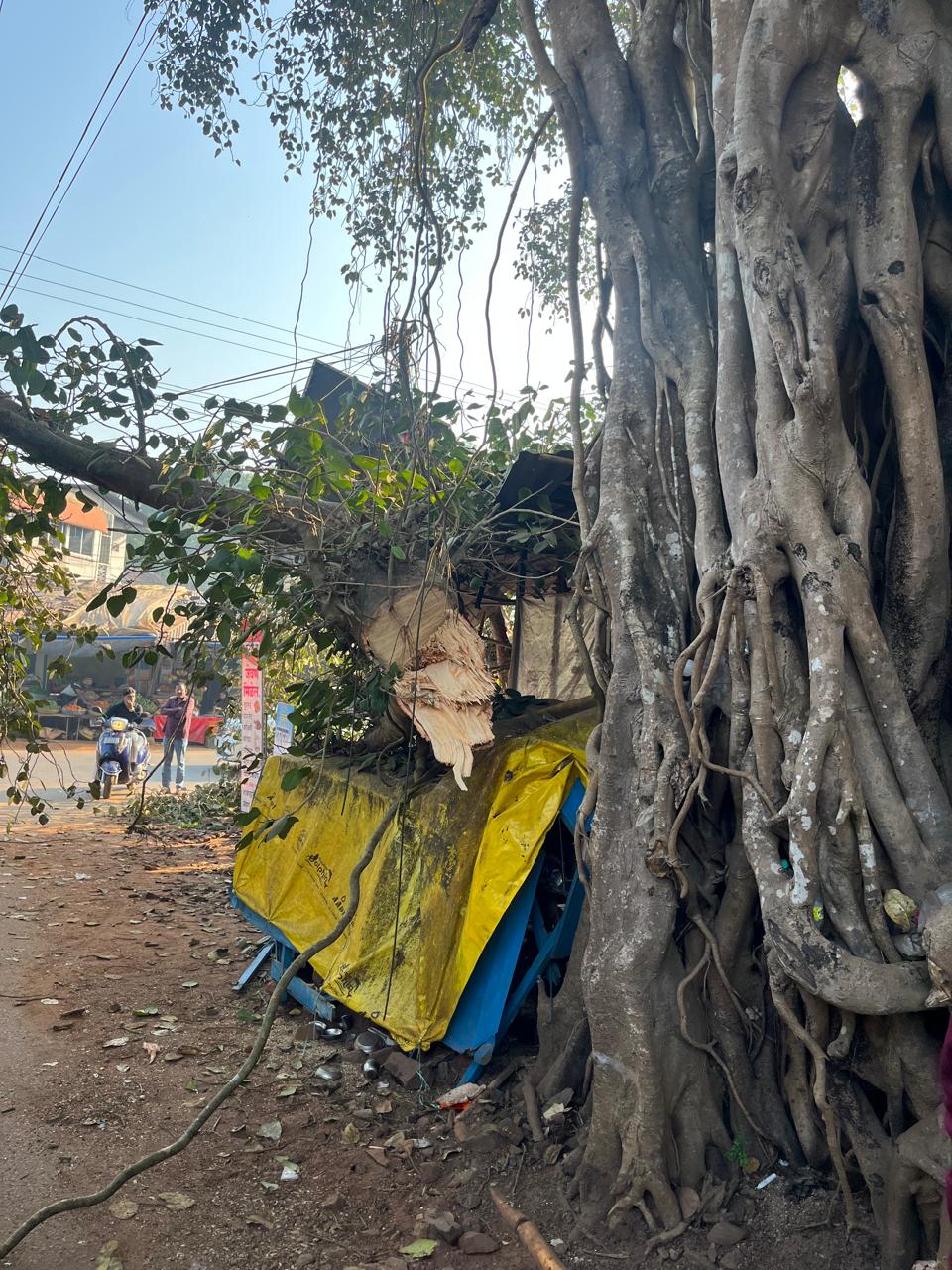 खाली असलेल्या स्टॉलवर झाड पडल्याने गरीब स्टॉलधारकांचे नुकसान