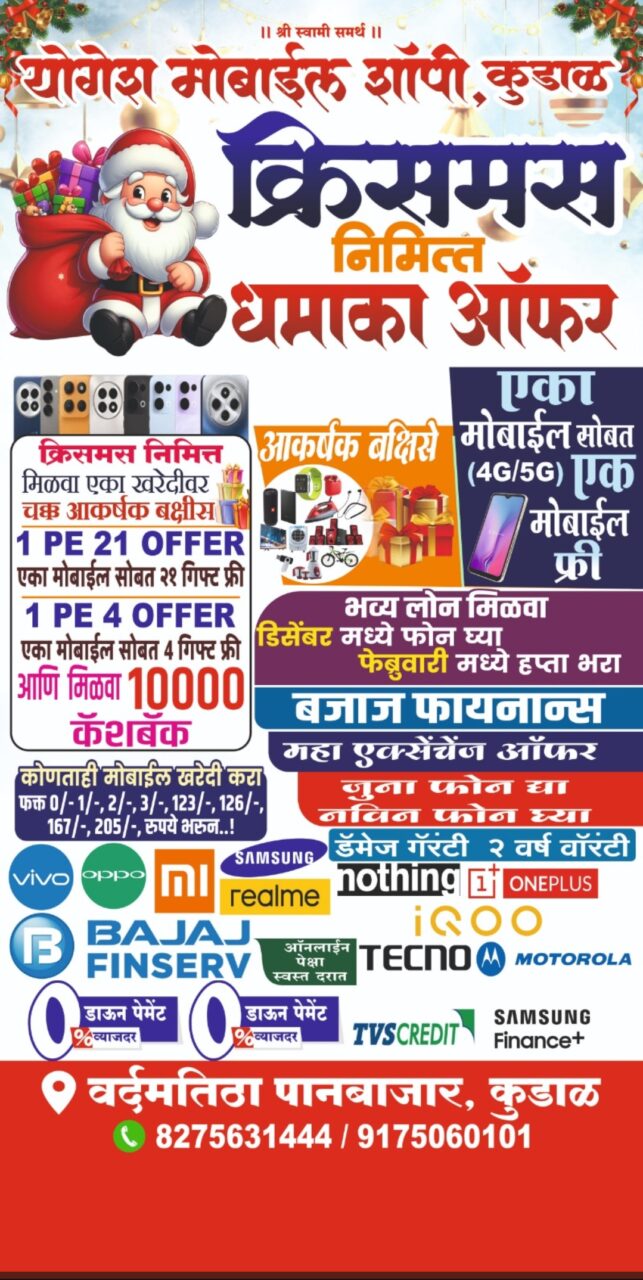 💥 योगेश मोबाईल शॉपीची ख्रिसमस निमित्त सर्वात मोठी ऑफर 💥