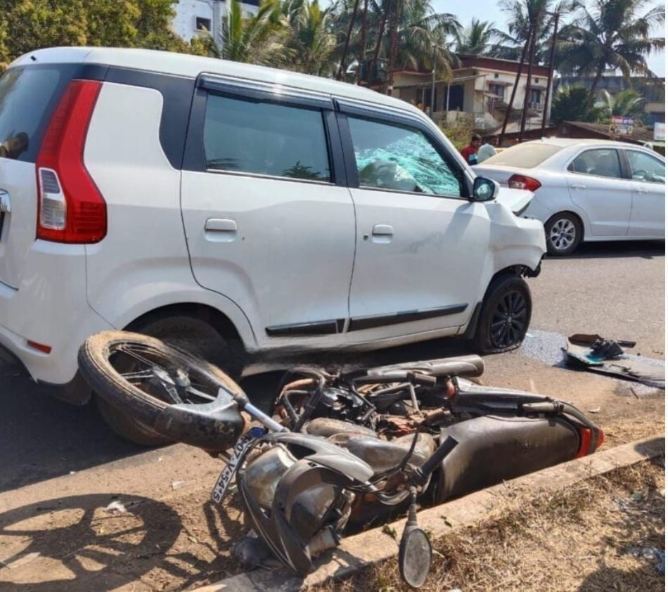 कणकवली : मुंबई गोवा महामार्गावर कणकवली नजिक जानवली येथे कार आणि मोटरसायकल यांच्यात अपघात झाला. यात मोटरसायकलस्वाराला दुखापत झाली असून आज दुपारी सव्वा बारा वाजताच्या सुमारास हा अपघात झाला. अपघाताची माहीती मिळताच कणकवली पोलिसांनी घटनास्थळी धाव घेतली. अपघातात दोन्ही वाहनांचे नुकसान झाले आहे. घटनास्थळी नागरीकांचीही गर्दी झाली होती.