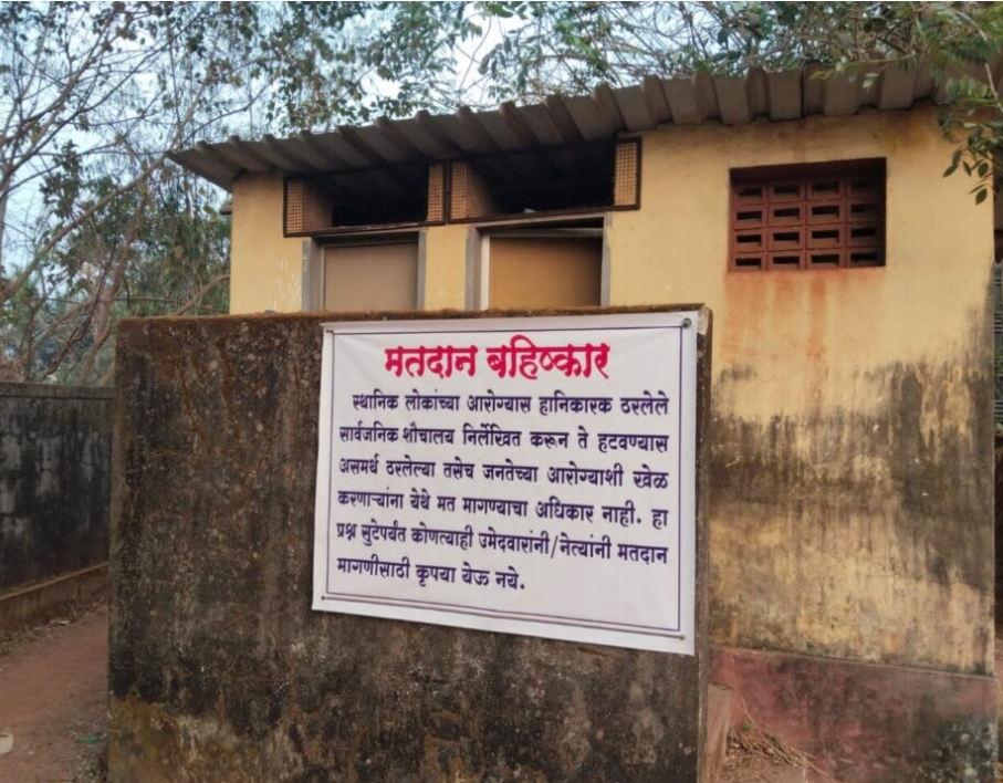 पिंगुळी म्हापसेकर तिठा येथील सार्वजनिक शौचालयाची दीर्घकाळापासून झालेली दुरवस्था, दुर्गंधी व आरोग्याच्या गंभीर समस्या याकडे सातत्याने दुर्लक्ष होत असल्याचा आरोप ग्रामस्थांकडून केला जात आहे. या पार्श्वभूमीवर अज्ञात व्यक्तींनी सार्वजनिक शौचालयावर थेट जनतेच्या आरोग्याशी खेळ करणाऱ्यांना येथे मत मागण्याचा अधिकार नाही असा स्पष्ट संदेश देणारा फलक लावला आहे. या फलकावर, हा प्रश्न सुटेपर्यंत कोणत्याही उमेदवारांनी अथवा नेत्यांनी मतदान मागण्यासाठी येथे येऊ नये, असे स्पष्ट आवाहन करण्यात आले असून, हे केवळ निषेधाचे नव्हे तर थेट मतदानावर बहिष्कार टाकण्याचा इशाराच मानले जात आहे.