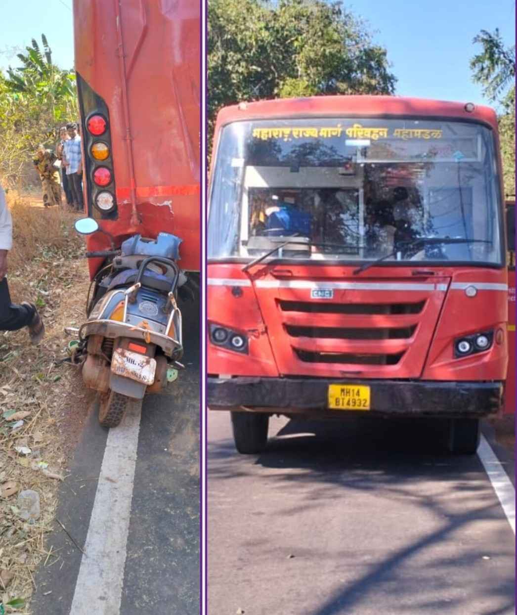 कुडाळ : कुडाळ-वेंगुर्ले मार्गावरील वाडीवरवडे येथे आज दुपारी ३.३० च्या सुमारास एसटी आणि दुचाकी यांच्यात अपघात झाला. या अपघातात दुचाकीवरील तरुणीच्या पायाला किरकोळ दुखापत झाली आहे. प्राप्त माहितीनुसार, कुडाळ आगारातून दुपारी ३ वाजता सुटलेली कुडाळ मठ वेंगुर्ला (एम एच १४ बी टी ४९३२) ही एसटी बस वाडीवरवडे येथे आली असता मागून येणाऱ्या दुचाकीची बसला मागून धडक बसली. यामध्ये दुचाकीवरील तरुणीच्या पायाला दुखापत झाली आहे. तिला उपचारासाठी रुग्णालयात नेण्यात आले आहे.
