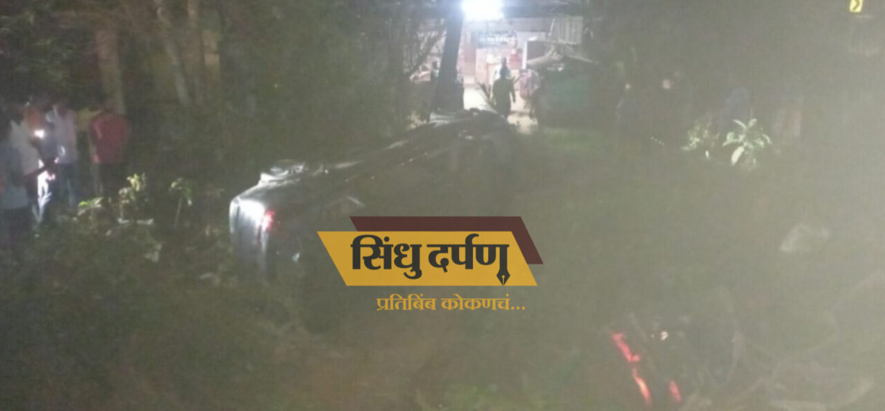 मिळालेल्या माहितीनुसार, संबंधित कार मुंबईहून गोव्याकडे जात होती. वेताळबांबर्डे पुलाजवळ कार पोहोचली असता तेथील अरुंद लेनचा चालकाला अंदाज न आल्याने कारवरील नियंत्रण सुटले. त्यामुळे कार महामार्गालगत असलेल्या सखल भागात जाऊन पलटी झाली.