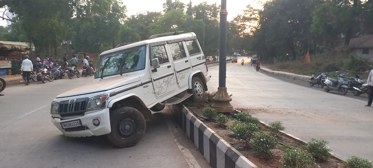 कुडाळ काॅलेज चौक ते अभिमन्यू हाॅटेल दरम्यान तहसीलदार कार्यालया नजिकच्या रस्त्यावर जीपला अपघात झाला. पिंगुळीहून सावंतवाडीच्या दिशेने जाणा-या बोलेरी जीपच्या चालकाचे वाहनावरील नियंत्रण सुटले आणि जीप दुभाजकावर चढली. त्यानंतर पुढील चाके दुस-या लेनवर उतरली. हा अपघात आज सायंकाळी सहा वाजताच्या सुमारास झाला. यात सुदैवाने दोन लहान मुलांसह चार जण बालंबाल बचावले. यात दुभाजकाचे नुकसान झाले. घटनास्थळी नागरीकांची मोठी गर्दी झाली.