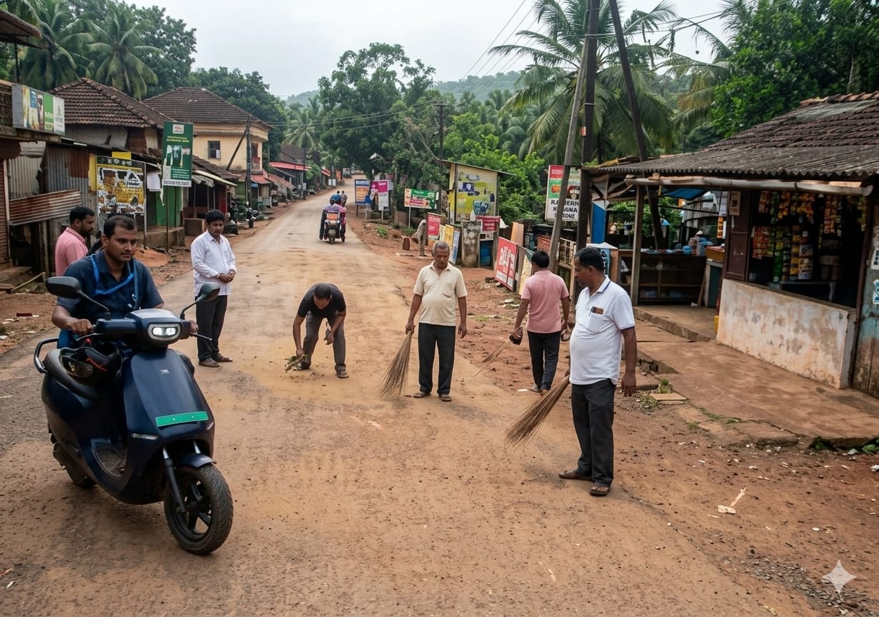 या गंभीर परिस्थितीची माहिती मिळताच शिवसेना सिंधुदुर्ग उपजिल्हाप्रमुख राजा गावडे आणि महसूल विभागाने तातडीने घटनास्थळी धाव घेतली. राजा गावडे यांनी महसूल यंत्रणेला सोबत घेऊन ग्रामस्थांच्या मदतीने रस्त्यावरील वाळू झाडूने बाजूला केली. केवळ वाळू हटवून न थांबता, दुचाकी घसरू नये म्हणून संपूर्ण रस्त्यावर पाणी मारून रस्ता स्वच्छ करण्यात आला. प्रशासनाच्या या तत्परतेमुळे पुढील मोठे अपघात टळले असून स्थानिक नागरिकांनी या कामगिरीचे स्वागत केले आहे.