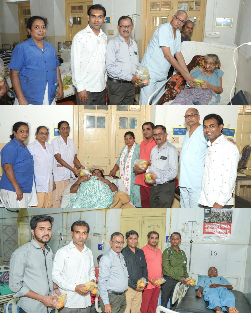 सावंतवाडी : भाजपा स्थापना दीन व जागतिक आरोग्य दिनाच्या निमित्ताने भाजपा युवानेते विशालजी परब यांच्या संकल्पनेतून सावंतवाडी उपजिल्हा रुग्णालय व आयुर्वेदीक रुग्णालयात रुग्णांना फळवाटप करण्यात आले. यावेळी उपजिल्हा रुग्णालयाचे वैद्यकीय अधिक्षक डॉ. ज्ञानेश्वर ऐवाळे व आयुर्वेदीक रुग्णालयाचे डॉ. राजेशकुमार गुप्ता केतन आजगांवकर, धिरेंद्र म्हापसेकर, गोविंद साटेलकर, बंटी जामदार, सॕबेस्तीन फर्नांडीस, राजू धारपवार, स्वप्नील घाटे आदी उपस्थित होते.
