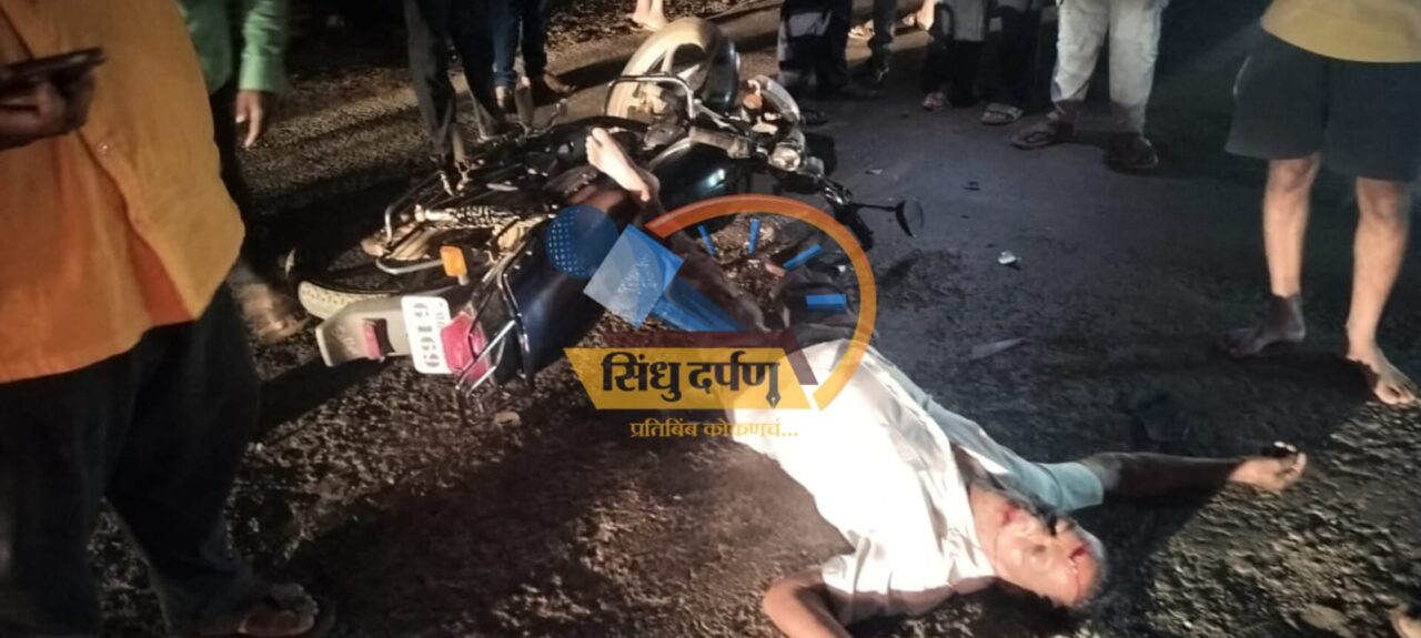 याबाबत सविस्तर वृत्त असे की, पुंडलिक नाईक (रा. आंबडपाल) हे आपल्या ताब्यातील दुचाकीने कुडाळ येथून आंबडपाल येथील घरी जात होते. कृष्णाई सुपर मार्ट येथे आले असता त्यांच्या पुढे चालत असलेल्या बोलेरो पिकपला त्यांची जोरदार धडक बसली. या धडकेचा आवाज एवढा भीषण होता की आसपासच्या परिसरातील नागरिकांनी घटनास्थळी धाव घेतली. या अपघातात नाईक यांच्या डोक्याला गंभीर दुखापत होऊन मोठा रक्तस्राव झाला. यावेळी शिवसेना तालुका संघटक रोहित भोगटे प्रसंगावधान राखत १०८ रुग्णवाहिकेला पाचारण केले. यानंतर उपस्थितांच्या सहाय्याने रक्ताच्या थारोळ्यात पडलेल्या पुंडलिक नाईक यांना रुग्णवाहिकेतून ग्रामीण रुग्णालय कुडाळ येथे उपचारासाठी दाखल करण्यात आले. परंतु, उपचार सुरू असताना डॉक्टरांनी त्यांना मृत घोषित केले.