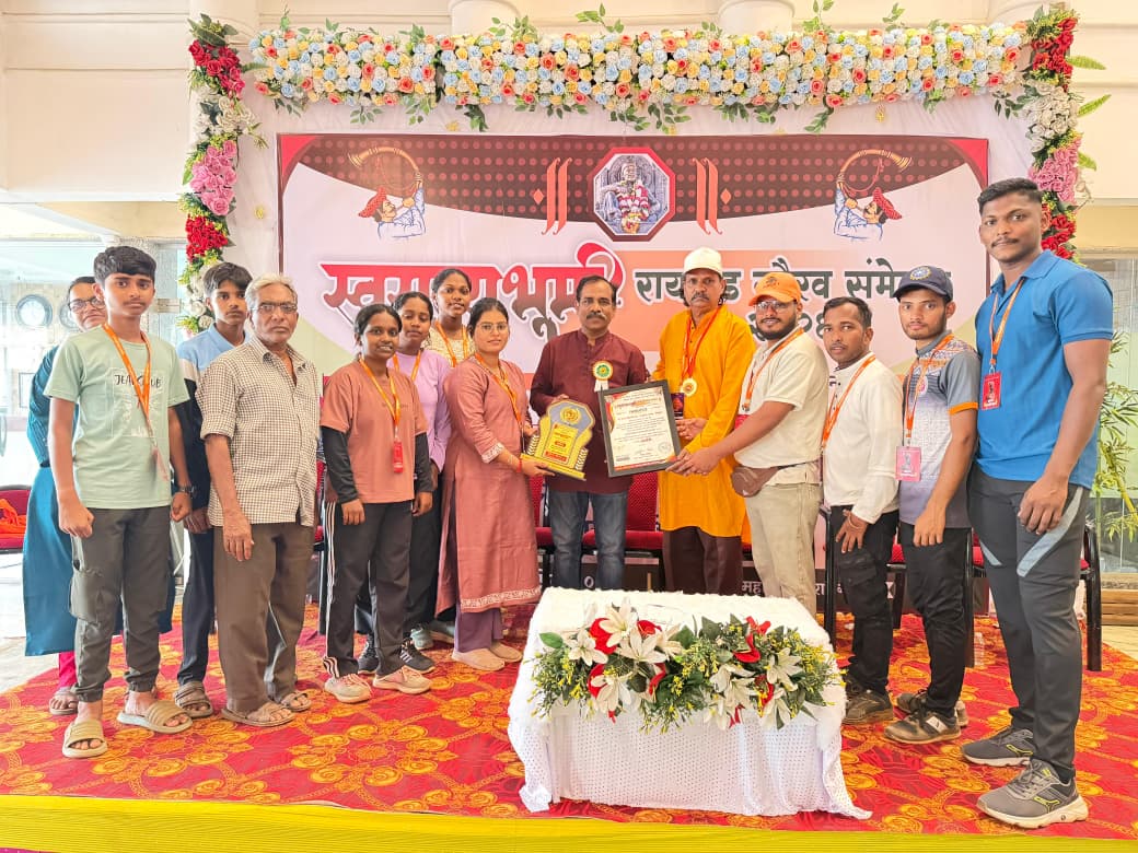 रायगड : ०३ एप्रिल २०२६ रोजी रायगड येथील फाऊंटन IN हाॅटेलमध्ये आई फाउंडेशन आणि पत्रकार संघ महाराष्ट्र राज्य यांच्यातर्फे “रायगड” गौरव🎖️ संमेलनाचे आयोजन करण्यात आले होते. या भव्यदिव्य सोहळ्यात “संकल्प शिवप्रतिष्ठान” या संस्थेला सुद्धा छत्रपती शिवराय समाज भूषण पुरस्कार🏆 प्रदान करण्यात आला. रायगड येथे पार पडलेल्या या सोहळ्यास कॅबिनेट मंत्री मा.श्री. भरतशेठ गोगावले साहेब, अभिनेते श्री.संतोष पाटिल तसेच अनेक मान्यवर उपस्थित होते.
