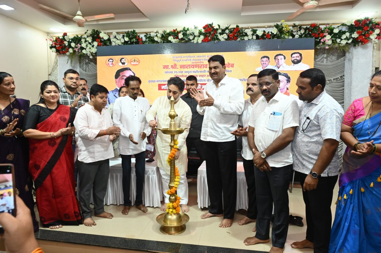 माजी मुख्यमंत्री तथा विद्यमान खासदार नारायण राणे यांच्या वाढदिवसाचे औचित्य साधून कुडाळ शहर शिवसेनेच्यावतीने कुडाळ नगरपंचायतीमध्ये दीनदयाळ अंत्योदय योजनेअंतर्गत नोंदणीकृत झालेल्या महिला बचत गटांसाठी आज महालक्ष्मी हॉल येथे मार्गदर्शन मेळाव्याचे आयोजन करण्यात आले होते. मेळाव्याचे उद्घाटन आमदार निलेश राणे यांच्या हस्ते झाले यावेळी शिवसेना जिल्हा प्रमुख दत्ता सामंत, जिल्हा परिषद उपाध्यक्ष दादा साईल, शिवसेना जिल्हा महिला प्रमुख दीप्ती पडते, माजी जिल्हा परिषद अध्यक्ष संजय पडते, काका कुडाळकर, उपजिल्हाप्रमुख अरविंद करलकर, सभापती मिलिंद नाईक, मालवण उपनगराध्यक्ष दीपक पाटकर, तालुका प्रमुख दीपक नारकर, कुडाळ शहर प्रमुख अभि गावडे, जिल्हा परिषद सदस्य रुपेश कानडे, गटनेता विलास कुडाळकर, देवेंद्र नाईक, निखिल कांदळगावकर, नगरसेवक ॲड. राजीव कुडाळकर, महिला शहर प्रमुख श्रुती वर्दम, नगरसेविका चांदणी कांबळी, नयना मांजरेकर, चेतन पडते, रेवती राणे, राकेश कांदे, मंगेश चव्हाण, वैशाली पावसकर, संजय भोगटे, रेखा काणेकर, महिला बचत गट आदी मोठ्या संख्येने उपस्थित होते