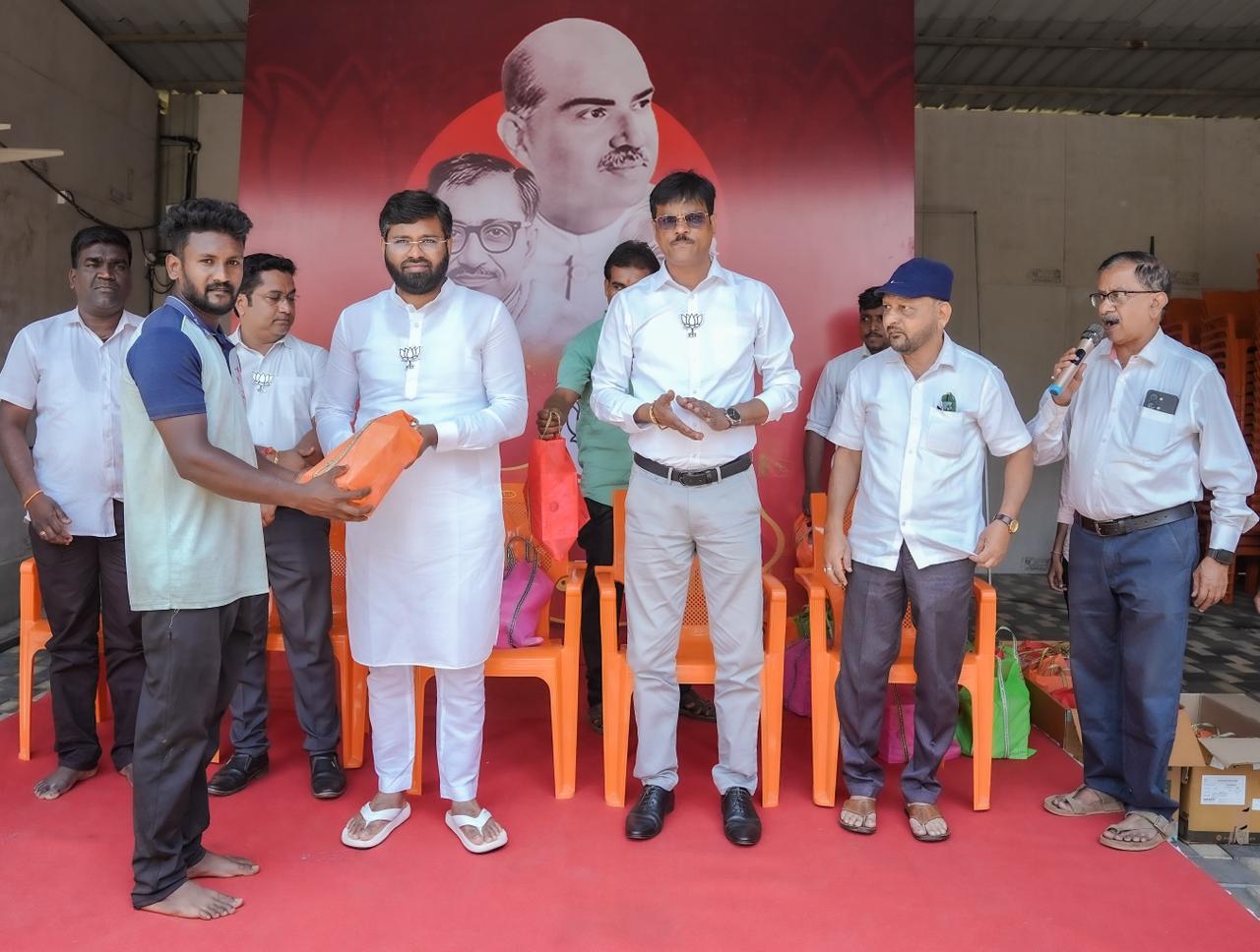 यावेळी स्वच्छता कामगारांना आवश्यक आरोग्य साहित्यांचे वाटप करण्यात आले. समाजाच्या आरोग्य आणि स्वच्छतेसाठी दिवस-रात्र मेहनत घेणाऱ्या या कर्मचाऱ्यांच्या कार्याचा गौरव करत त्यांना सन्मानित करण्यात आले.