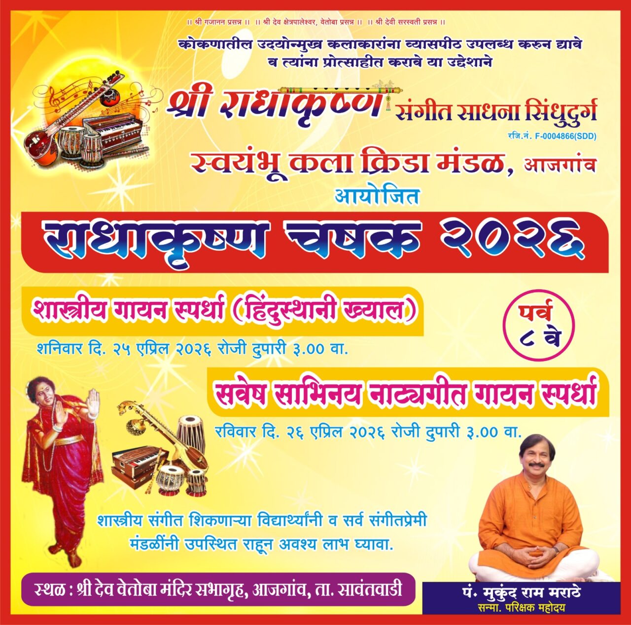 ‘श्री राधाकृष्ण संगीत साधना सिंधुदुर्ग’ आयोजित गायन स्पर्धांचे करणार परीक्षण