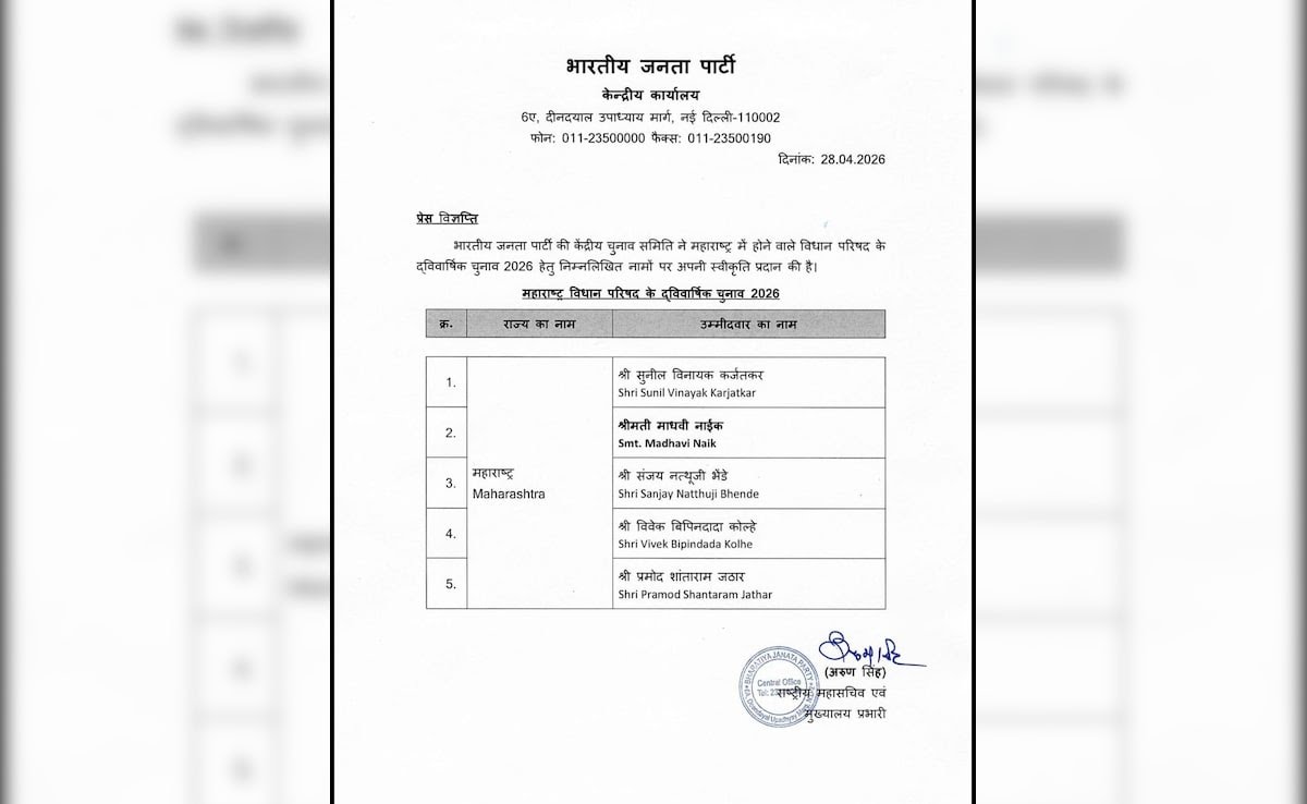 मुंबई : विधान परिषदेसाठी भाजपच्या पाच उमेदवारांची नावे जाहीर करण्यता आली आहेत. भाजपने आपल्या यादीत माजी आमदार प्रमोद जठार, संजय भेंडे, माधवी नाईक, विवेक कोल्हे आणि प्रज्ञा सातव यांना उमेदवारी देण्यात आली आहे. भाजप कोणाला उमेदवारी देणार याकडे सर्वांचे लक्ष लागले होते. विधान परिषदेत जाण्यासाठी अनेक जण इच्छुक होते. पण या पाच जणांना संधी मिळाली आहे.