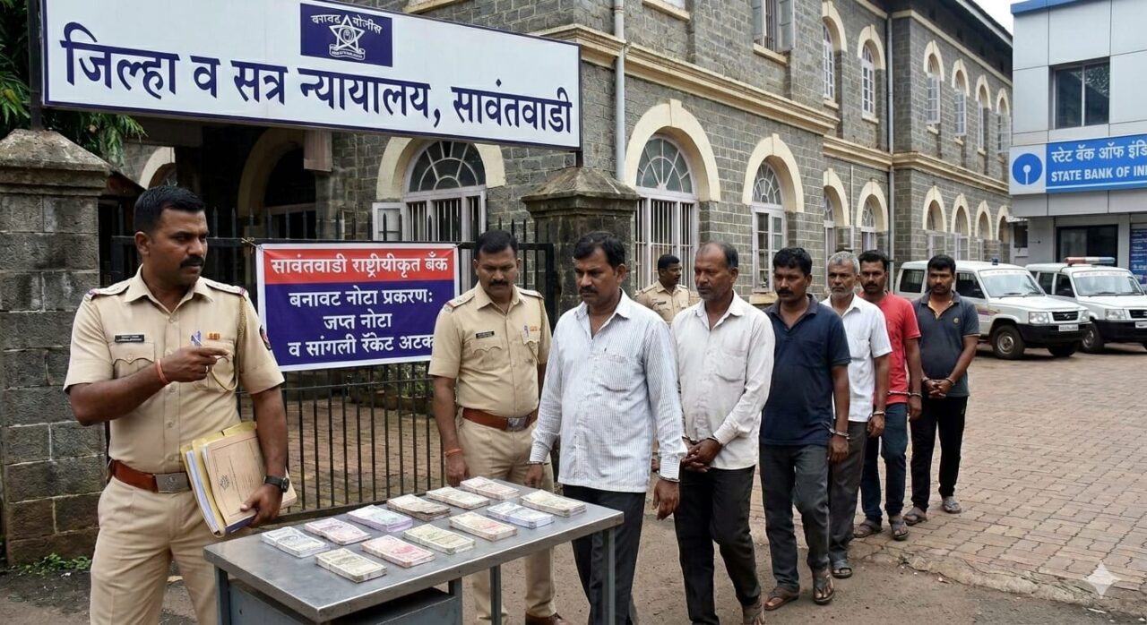 या प्रकरणाचा छडा लावण्यासाठी पोलीस निरीक्षक अमोल चव्हाण यांच्या मार्गदर्शनाखाली पथकाने तपासाची चक्रे फिरवली. या बनावट नोटा प्रकरणी सांगली कारागृहात आधीच शिक्षा भोगत असलेल्या सहा संशयित आरोपींना न्यायालयाच्या आदेशानुसार सावंतवाडी पोलिसांनी ताब्यात घेतले आहे. अटक करण्यात आलेल्यांमध्ये कोल्हापूर येथील सुप्रीत देसाई, राहुल जाधव, इब्रार इनामदार, नरेंद्र शिंदे, संदीप कांबळे आणि मुंबईतील सिद्धेश म्हात्रे यांचा समावेश आहे. या सहाही आरोपींना सावंतवाडी न्यायालयाने दोन दिवसांची पोलीस कोठडी सुनावली असून त्यांची कसून चौकशी सुरू आहे.