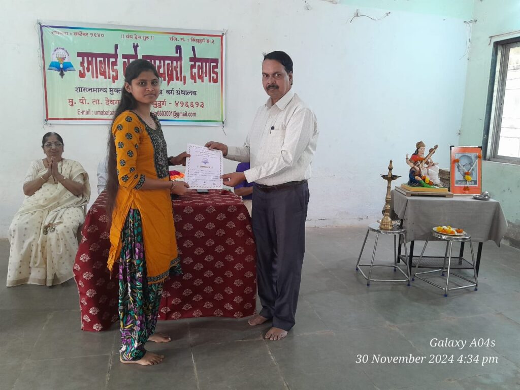 या स्पर्धेमध्ये श्री संजीव राऊत यांनी प्रथम क्रमांक प्राप्त केला. द्वितीय कु. गायत्री मेस्त्री आणि तृतीय कु. अनुष्का धुरी यांना मिळाले. सौ. अनुराधा दीक्षित आणि श्री प्रकाश पंडित यांनी परीक्षक म्हणून काम पाहिले. यावेळी मान्यवरांच्या हस्ते विजेत्या स्पर्धकांना रोख पारितोषिके व प्रमाणपत्र देऊन सत्कार करण्यात आला. तसेच सहभागी स्पर्धकांना सहभाग प्रमाणपत्र देण्यात आले. या कार्यक्रमाचे सूत्रसंचालन ग्रंथपाल श्री प्रशांत बांदकर यांनी केले आणि शेवटी मान्यवरांचे , स्पर्धकांचे व उपस्थित श्रोत्यांचे आभार मानले.