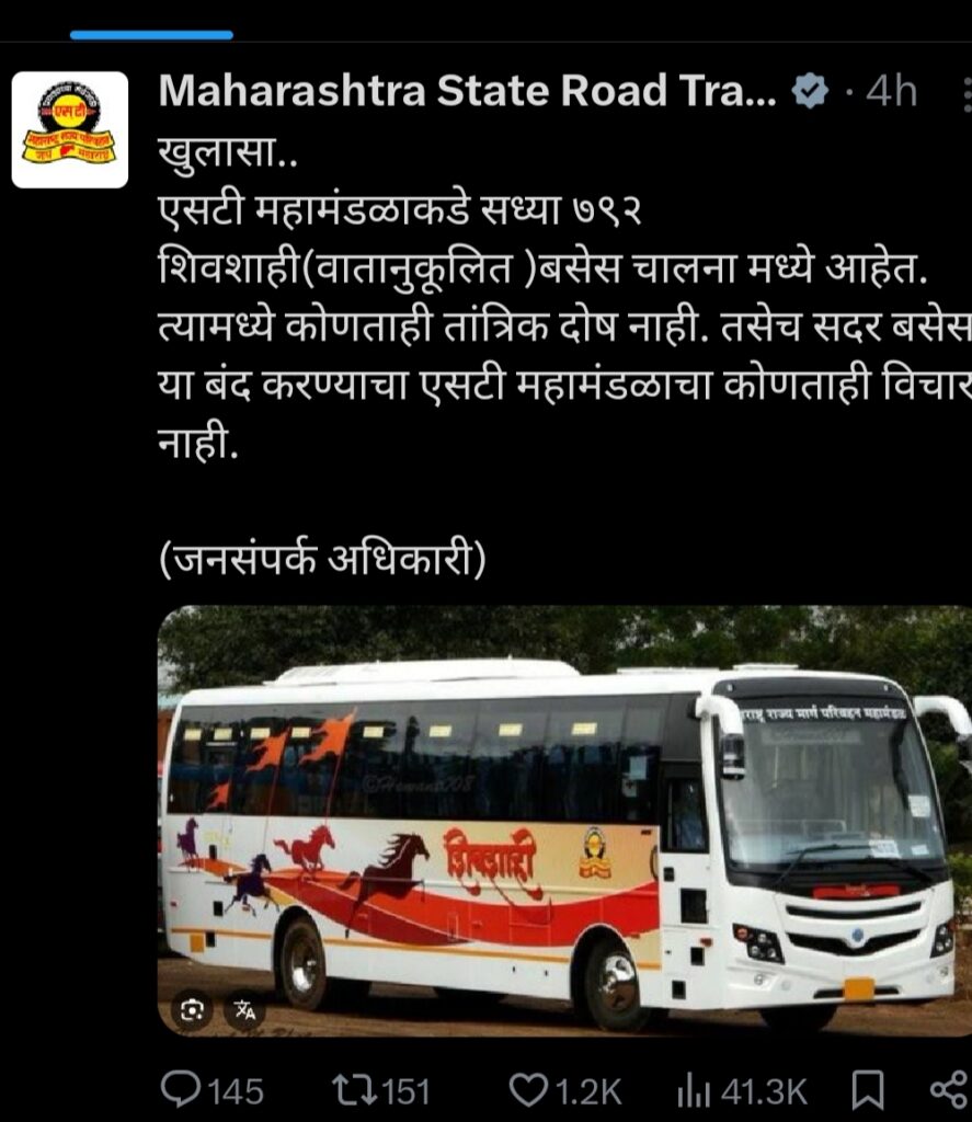 एसटी महामंडळाचा एक्स हॅण्डल वर खुलासा