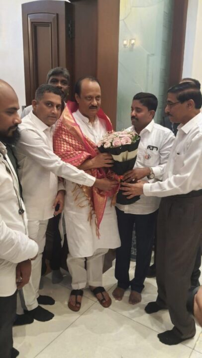 राष्ट्रवादी काँग्रेसचे नेते अजित पवार आज उपमुख्यमंत्री पदाची शपथ घेत आहेत. याबद्दल सिंधुदुर्ग जिल्हा राष्ट्रवादी काँग्रेसच्या पदाधिकाऱ्यांनी त्यांची देवगिरी या निवासस्थानी भेट घेत त्यांना शुभेच्छा दिल्या.