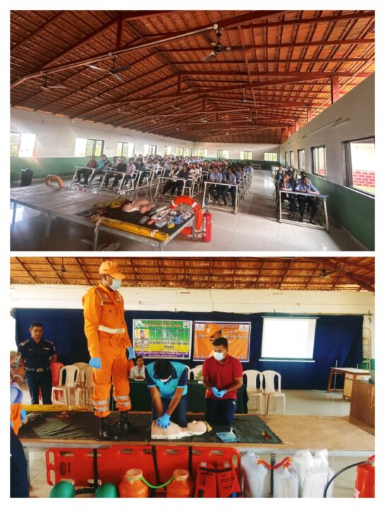 विद्यार्थी दशेत अनेक विद्यार्थी पर्यटन सफरीच्या अनुषंगाने समुद्र, नद्या, डोंगर यांना भेटी देत असतात. अशा वेळी पाण्यात बुडणे, दरीत कोसळणे, रस्ते अपघात, विषबाधा अशा प्रकारच्या आपत्ती उद्भवल्यास त्यावेळी कोणते प्रथमोपचार द्यावेत, पाण्यात बुडालेल्या व्यक्तीला बाहेर कसे काढावे, त्याला CPR कसा द्यावा, रस्ते अपघातील जखमी व्यक्तींना कसे हाताळावे, उपलब्ध साहित्याच्या अनुषंगाने स्ट्रेचर कसे बनवावे याचे प्रात्यक्षिकासह प्रशिक्षण देण्यात आले. विषारी व बिनविषारी सापांच्या विविध प्रजातींची माहिती NDRF पथकामार्फत देण्यात आली.