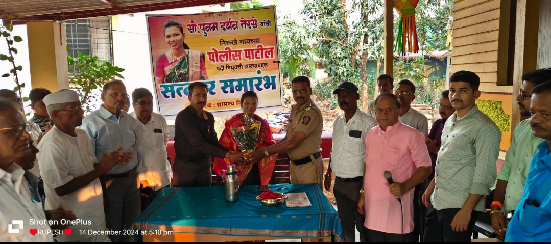 कुडाळ : निरुखे गावच्या पोलीस पाटीलपदी नियुक्ती झाल्याबद्दल सौ. पूनम दर्शन तेरसे यांचा सत्कार समारंभ आज आयोजित करण्यात आला होता. यावेळी मोठ्या संख्येने ग्रामस्थ उपस्थित होते. यावेळी सौ. तेरसे यांना ग्रामस्थांच्या वतीने पुढील वाटचालीस भरभरून शुभेच्छा देण्यात आल्या.