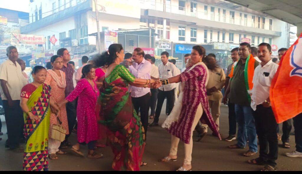 कणकवली शहरात जोरदार घोषणा देत फटाक्यांची आतिषबाजी