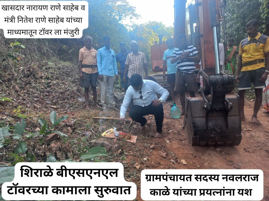 याबाबत गेले काही महिने ग्रामपंचायत सदस्य नवलराज काळे यांनी संबंधित अधिकारी कॉन्ट्रॅक्टर यांच्याशी संपर्क करा पाठपुरावा केला. या पाठपुरावाला गावातील जनतेचे उत्तम सहकार्य मिळाले व आज ग्रामस्थांच्या उपस्थितीत देव गांगो देव रवळनाथ देवी पावणाई यांस श्रीफळ वाहून प्रत्यक्ष टॉवर उभारणीला सुरुवात करण्यात आले. यावेळी बोलत असताना नवलराज काळे यांनी सन्माननीय राणे साहेबांचा कार्यकर्ता असल्याचा सार्थ अभिमान असल्याचे सांगितले जनतेच्या सहकार्यातून केलेल्या पाठपुराव्याला यश आले पुढील काम यशस्वीरित्या सर्वांनी लक्ष देऊन पूर्ण करून घेऊ,गावाच्या सर्वांगीण विकासासाठी एकत्र येऊन काम करूया असे प्रतिपादन काळे यांनी केले. यावेळी सन्माननीय नारायण राणे साहेब नितेश राणे साहेब यांचे भारतीय जनता पार्टीच्या सर्व पदाधिकाऱ्यांचे काळे यांनी आभार व्यक्त केले.