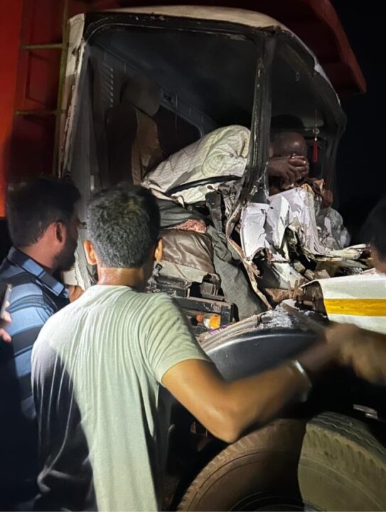सावंतवाडी : मुंबई गोवा महामार्गाच्या झाराप पत्रादेवी बायपास वर मळगाव ब्रिजच्या वरील भागात उभ्या असलेल्या पणजी येथून मुंबईच्या दिशेने जाणाऱ्या स्लीपर कोच लक्झरी बसला मागाहून येणाऱ्या डंपरने जोरदार धडक दिली. या अपघातात डंपरचालक केबिनमध्ये अडकून पडला तर बसच्या खाली काम करीत असलेला बस चालक व अन्य एक प्रवास असे दोघेजण गंभीर जखमी झाले. या तिघांनाही सावंतवाडी उपजिल्हा रुग्णालयात उपचारार्थ दाखल करण्यात आले आहे. पोलीस घटनास्थळी पोहोचले असून अधिक तपास सुरू आहे.