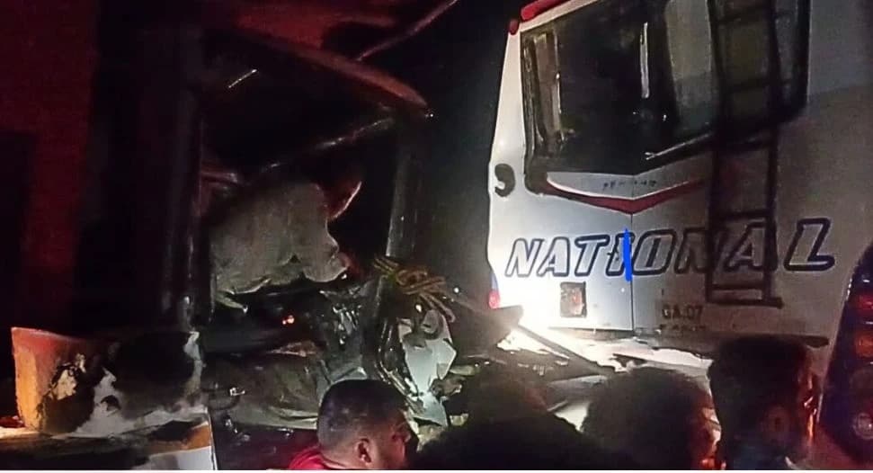 याबाबत अधिक माहिती अशी की, गोवा पणजी येथून मुंबईच्या दिशेने जाणारी नॅशनल ट्रॅव्हल्सची स्लीपर कोच बस (जीए ०७ एफ ८९९७) ही बस मुंबईच्या दिशेने जात होती. झाराप पत्रादेवी बायपास वर मळगाव ब्रिजच्या वर आली असताना गाडीत बिघाड झाल्याने गाडीचा पर्यायी चालक व क्लीनर गाडीखाली उतरले. गाडीच्या मागील भागात जाऊन ते पाहणी करत असताना पाठीमागून कुडाळच्या दिशेने वेगात जाणाऱ्या डंपर (जीए ०४ टी ४४८८) ने उभ्या बसला जोरदार धडक दिली.