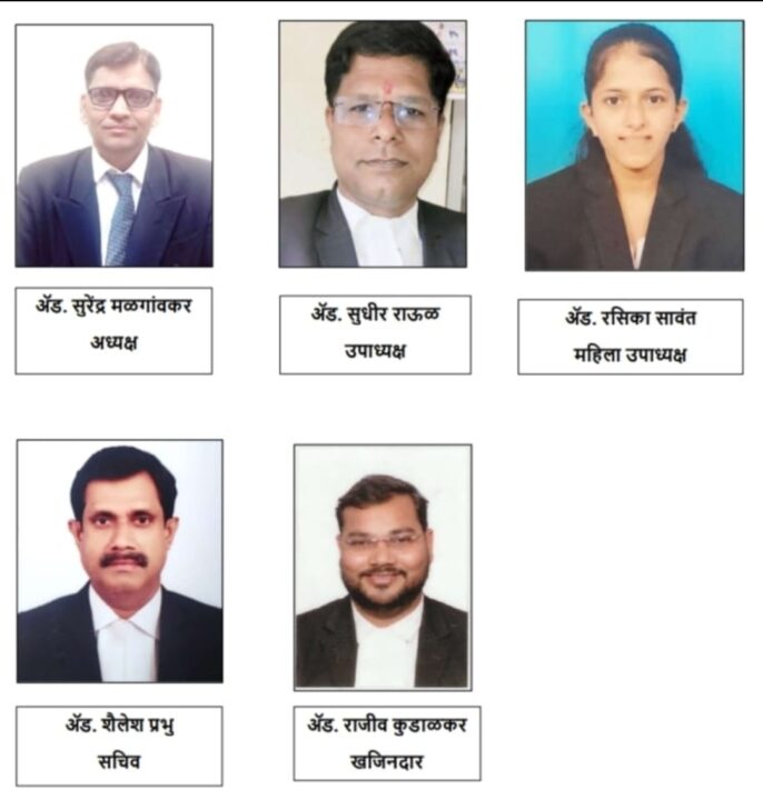 कुडाळ तालुका वकील संघटनेची एक वर्षाने निवड केली जाते. यावर्षीच्या कार्यकारणीची निवड करण्यात आली आहे. यामध्ये अध्यक्षपदी ॲड. सुरेंद्र मळगावकर, उपाध्यक्षपदी ॲड. सुधीर राऊळ, महिला उपाध्यक्षपदी ॲड. रसिका सावंत, सचिवपदी ॲड. शैलेश प्रभू, खजिनदारपदी ॲड. राजीव कुडाळकर यांची निवड करण्यात आली आहे ही निवड बिनविरोध करण्यात आली असून संघटनेच्या सर्व सदस्यांनी नूतन कार्यकारिणीचे अभिनंदन केले आहे.