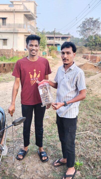 कणकवली : शहरातील मधलीवाडीनजीक सुतारवाडी येथे शुक्रवारी सायंकाळी ६ वा. च्या सुमारास भर वस्तीत आलेल्या आग्या घोणस या विषारी सर्पाला जीवंत पकडून यश वर्दम आणि संकेत फोंडेकर या सर्पमित्रांनी नैसर्गिक अधिवासात सोडले. शहरातील सुतारवाडी येथील श्री. चिंदरकर यांच्या घरानजीक शुक्रवारी सायंकाळी सर्प आढळून आला. घरालगतच्या एका पत्र्यामागे हा सर्प लपून राहिला होता. याबाबत सर्पमित्र यश वर्दम या युवकाला कळविल्यानंतर तो तेथे दाखल झाला. सदरचा सर्प म्हणजे आग्या घोणस जातीचा विषारी सर्प होता. यश वर्दम आणि संकेत फोंडेकर या दोघांनी आपल्यासोबतच्या सर्प पकडण्याच्या शिगेने हा सर्प शिताफीने एका बरणीत कैद करून नैसर्गिक अधिवासात सोडला.