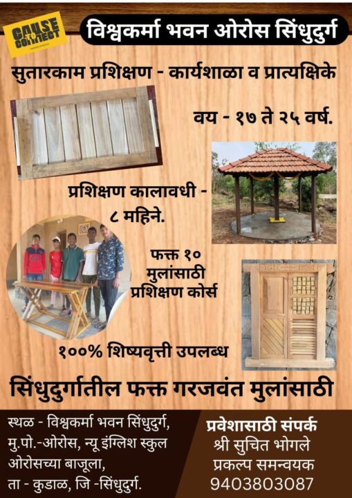 ठिकाण – विश्वकर्मा भवन ओरोस सिंधुदुर्ग. मु.पो – ओरोस, न्यू इंग्लिश स्कूल ओरोसच्या बाजूला, पोलीस कॉलनी समोर, ता – कुडाळ, जि – सिंधुदुर्ग. “प्रवेश व अधिक माहिती साठी खाली दिलेल्या नंबर वर संपर्क करावा. सुचित भोगले सर प्रकल्प समन्वयक 9403803087