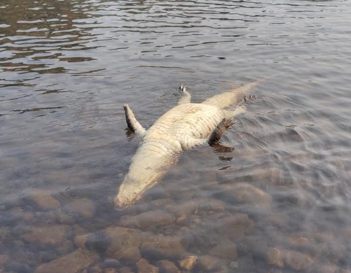 दोडामार्ग : तिलारी नदीच्या साटेली भेडशी येथील नदीपात्रात मृतावस्थेत मगर आढळून आली आहे. मात्र ही मगर जिलेटीन स्फोट घातल्यामुळे मरण पावली की अन्य कोणत्या कारणामुळे हे मात्र अद्याप स्पष्ट झाले नाही .