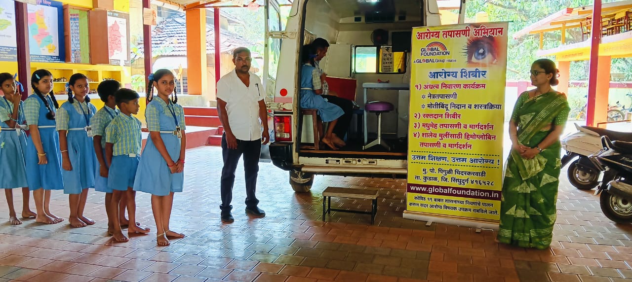 कुडाळ : उत्तम शिक्षण उत्तम आरोग्य या संकल्पनेखाली ग्लोबल फाउंडेशन जिल्ह्यामध्ये काम करत आहे. मोबाईलच्या वाढत्या प्रभावामुळे अल्पवयामध्ये मुलांमध्ये दृष्टिदोषाची समस्या मोठ्या प्रमाणात वाढत आहे. याचाच एक भाग म्हणून . जिल्ह्यातील जि प पूर्ण प्राथमिक शाळा आकेरी हुमरस या प्रशालेमध्ये पहिली ते सातवी मधील विद्यार्थ्यांची नेत्र तपासणी करण्यात आली. यावेळी ग्लोबल फाउंडेशनचे आरोग्य विभागाचे श्री देसाई सर, श्री स्वप्निल नाईक,नेत्र तज्ञ मिर्नरवास परब व श्री उमेश गावडे सर शालेय मुख्याध्यापिका सौ तळवणेकर मॅडम व अन्य शिक्षिका उपस्थित होत्या. प्रकल्पाअंतर्गत ४७ विद्यार्थ्यांची नेत्र तपासणी करण्यात आली. ग्लोबलच्या सहकार्याबद्दल मुख्याध्यापिका सौ.तळवणेकर मॅडम यांनी आभार व्यक्त केले.
