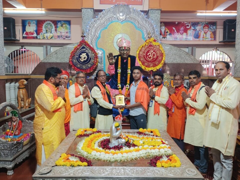 कुडाळ : भारतातील सर्वात पहिले साईबाबा मंदिर कुडाळ येथील श्री साईबाबांची दिव्य पादुका पालखी श्री समर्थ सद्गुरु राऊळ महाराज मठामध्ये पोहचली . त्या निमित्त कुडाळ साई मंदिराचे विश्वस्त श्री राजन श्रीपाद माडये यांनी श्री अर्थव विठोबा राऊळ यांना शाल व श्रीफळ देऊन सन्मानित करण्यात आले.