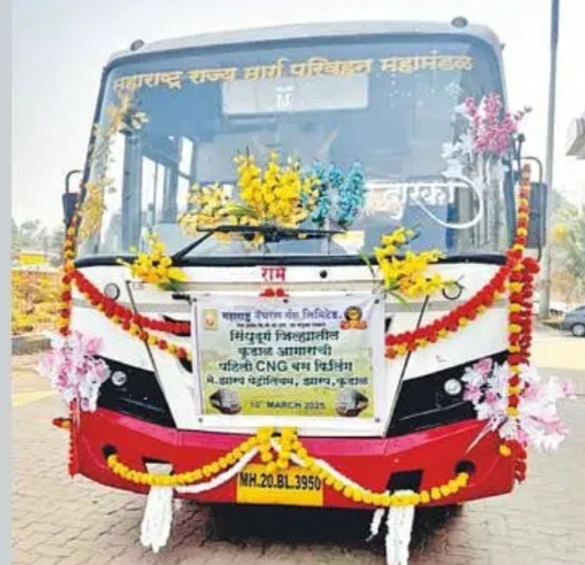 कुडाळ: एसटी महामंडळाच्या सीएनजी बसेस सिंधुदुर्ग जिल्ह्यात दाखल झाल्या असून, कुडाळ एसटी आगाराला 5 सीएनजी बसेस उपलब्ध करून देण्यात आल्या आहेत. या बसेस प्रवाशी सेवेत दाखल झाल्या आहेत.या आगारासाठी एकूण 50 सीएनजी बसेसची मागणी करण्यात आली असून, उर्वरित बसेस टप्प्याटप्प्याने या बसेस दाखल होणार आहेत तसेच लवकरच कुडाळ डेपोत सीएनजी गॅस पंप उभारण्यात येणार आहे, अशी माहिती आगार प्रमुख रोहीत नाईक यांनी दिली.वाढते प्रदूषण रोखण्यासाठी आणि डिझेलचे वाढते दर यामुळे होणारा एसटी महामंडळाचा तोटा कमी करण्याच्या उद्देशाने राज्यात एक हजार एसटी बसेस सीएनजी गॅसवर चालविण्याचा निर्णय एसटी महामंडळाने घेतला आहे.त्यामुळे सिंधुदुर्गातही आता सीएनजी बसेस रस्त्यावर धावणार आहेत.