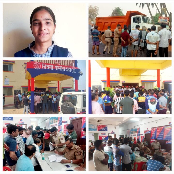 दरम्यान निवती-पाट पंचक्रोशीतील ग्रामस्थांनी निवती पोलिस ठाण्यात धडक देत,अपघाताला कारणीभूत ठरणाऱ्यांवर गुन्हे दाखल करून कारवाई करावी, अशी मागणी केली. या अपघाताची खबर मनस्वीचा चुलत भाऊ योगेश उल्हास मेतर (रा.निवती मेढा) यांनी निवती पोलीस ठाण्यात दिली. त्यानुसार या अपघात प्रकरणी १६ वर्षीय मोटारसायकलस्वार मुलगा, तसेच तो अज्ञान असतानाही व त्याच्याकडे गाडी चालविण्याचा परवाना नसतानाही त्याला गाडी चालविण्यास दिल्याने त्याचे वडील आणि डंपर चालक अशा तिघांवर निवती पोलीस ठाण्यात गुन्हा दाखल करण्यात आल्याची माहीती निवती पोलीसांनी दिली.