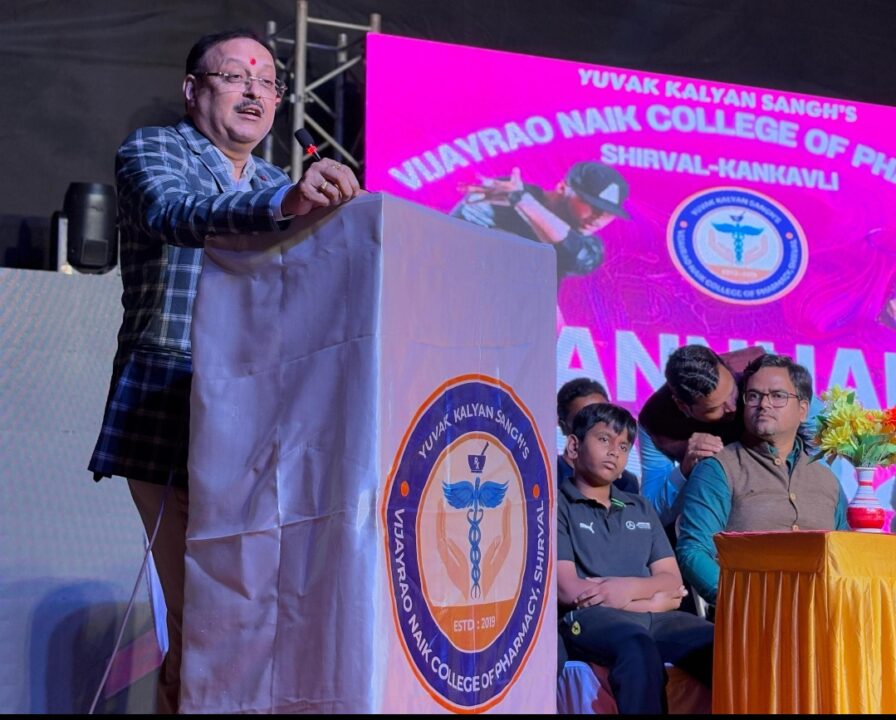 युवक कल्याण संघ कणकवली संचलित शिरवल येथील विजयराव नाईक कॉलेज ऑफ फार्मसी या कॉलेजचे संस्कृती २०२५ वार्षिक स्नेहसंमेलन व  पारितोषिक वितरण समारंभ  शुक्रवारी  संपन्न झाला. या कार्यक्रमाचे उदघाटन संस्थेचे अध्यक्ष माजी आमदार वैभव नाईक यांच्या उपस्थितीत सिंधुदुर्गातील प्रतिथयश वकील  ॲड. उमेश सावंत यांच्या हस्ते दीपप्रज्वलन करून करण्यात आले. वैभव नाईक यांनी ॲड.  उमेश सावंत यांच्या कार्याचा गौरव करत शाल श्रीफळ व पुष्पगुच्छ  देऊन त्यांचा सत्कार केला. वैभव नाईक यांनी मार्गदर्शन करताना गुणवंत विद्यर्थ्यांचे अभिनंदन केले आणि पुढील वाटचालीस शुभेच्छा दिल्या. यावेळी विद्यार्थ्यांचे विविध सांस्कृतिक कार्यक्रम पार पडले.