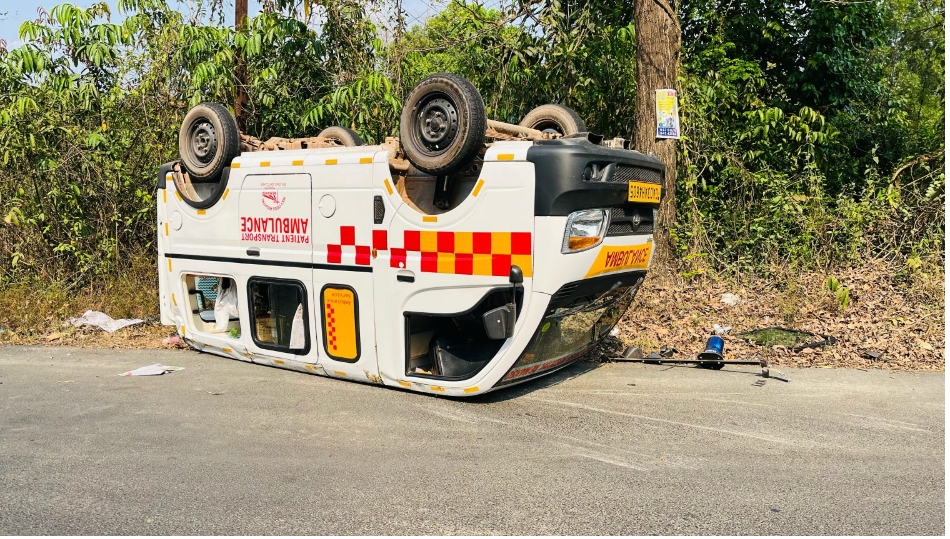 सावंतवाडी : गोवा येथून खाजगी रुग्णवाहिकेतून पुण्याच्या दिशेने जात असताना माजगाव येथील मांडव हॉटेल नजीक रस्त्यात गाय आडवी आल्याने रुग्णवाहिका पलटी होऊन झालेल्या अपघातात रुग्णवाहिकेतील रुग्ण असलेली वृद्ध महिला जखमी झाली. या घटनेची माहिती मिळताच सामाजिक बांधिलकी संघटनेचे कार्यकर्ते रवी जाधव आपल्या सहकाऱ्यांसमवेत घटनास्थळी दाखल झाले त्यांनी जखमे वृद्ध महिलेसह रुग्णवाहिकेतील तिच्या सहकारी परिचारिकांना १०८ रुग्णवाहिकेतून उपचारार्थ सावंतवाडी उपजिल्हा रुग्णालयात दाखल केले. या अपघातात रुग्णवाहिकेचे मोठे नुकसान झाले आहे. सुदैवाने आतील रुग्ण महिला तसेच परिचारिका व चालक यांना मोठी दुखापत झाली नाही.