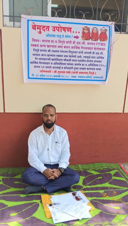 सावंतवाडी : गाव मौजे निगुडे सरपंच श्री. लक्ष्मण गंगाराम निगुडकर यांनी दिनांक २७ फेब्रुवारी २०२५ रोजी १५ वित्त आयोगातील ग्रामपंचायत स्तर मधून इमारत रंगकाम करणे निगुडे गावठाणवाडी अंगणवाडी येथील कामासंदर्भात जी रक्कम अदा केली ती संबंधित काम करणारे ठेकेदाराला अदा करता अन्य ठिकाणी आपली डी. एस. सी. वापरून पी. एफ. एम. एस. खात्यात रक्कम जमा करून गैरव्यवहार केले यासंदर्भात गटविकास अधिकारी पंचायत समिती सावंतवाडी श्री. वासुदेव नाईक यांना श्री. गुरुदास गवंडे यांनी पत्रव्यवहार केला. २५ मार्च २०२५ रोजी व त्या निवेदनात त्यांनी म्हटले आहे की सरपंच निगुडे यांनी आर्थिक गैर व्यवहार केलेला आहे. व या आर्थिक गैरवराची खातेनिहाय चौकशी करून संबंधित सरपंच यांच्यावर आर्थिक गैरव्यवहार व अनियमितता यांच्या अंतर्गत ग्रामपंचायत अधिनियम १९५८ कलम ३९ प्रमाणे कारवाई करण्यात यावी व फौजदारी गुन्हा दाखल करण्यात यावा अशी त्यांनी मागणी केली होती परंतु त्यांची मागणी मान्य न झाल्यामुळे आज सकाळी ठीक १०:०० वा पंचायत समिती, सावंतवाडी या ठिकाणी त्यांचे उपोषण सुरू आहे उपोषणस्थळी पंचायत समितीचे गटविकास अधिकारी श्री. व्ही. एम. नाईक , ग्रामविस्तार अधिकारी श्री गजानन धर्णे यांनी भेट घेतली असता सदर गोष्ट ही सरपंचाकडून चुकीच्या व नजरचुकीने झालेली आहे त्यामुळे त्यांच्यावर असा गुन्हा लावता येणार नाही असं म्हणणं गटविकास अधिकारी सांगितल्यामुळे याला गुरुदास गावंडे यांनी उत्तर दिलं की सदरचा निधी हा जर चुकीच्या पद्धतीने ट्रान्सफर केला गेला तर रक्कम खात्यात जमा व्हायला उशीर का लागला २७ फेब्रुवारी २०२५ रोजी खात्यात रक्कम सरपंचांनी हस्तांतरण केली व सदरची रक्कम ही ०४ एप्रिल २०२५ रोजी ग्राम निधीमध्ये तब्बल ३८ दिवसांनी कशी काय जमा झाली. म्हणजे ही अनियमित आणि आर्थिक गैरवावर नाही का असा सवाल श्री गवंडे यांनी उपस्थित केला मी उपोषणावर माझ्या ठाम आहे मी उठणार नाही असे त्यांनी गटविकास अधिकारी यांना सांगितले.