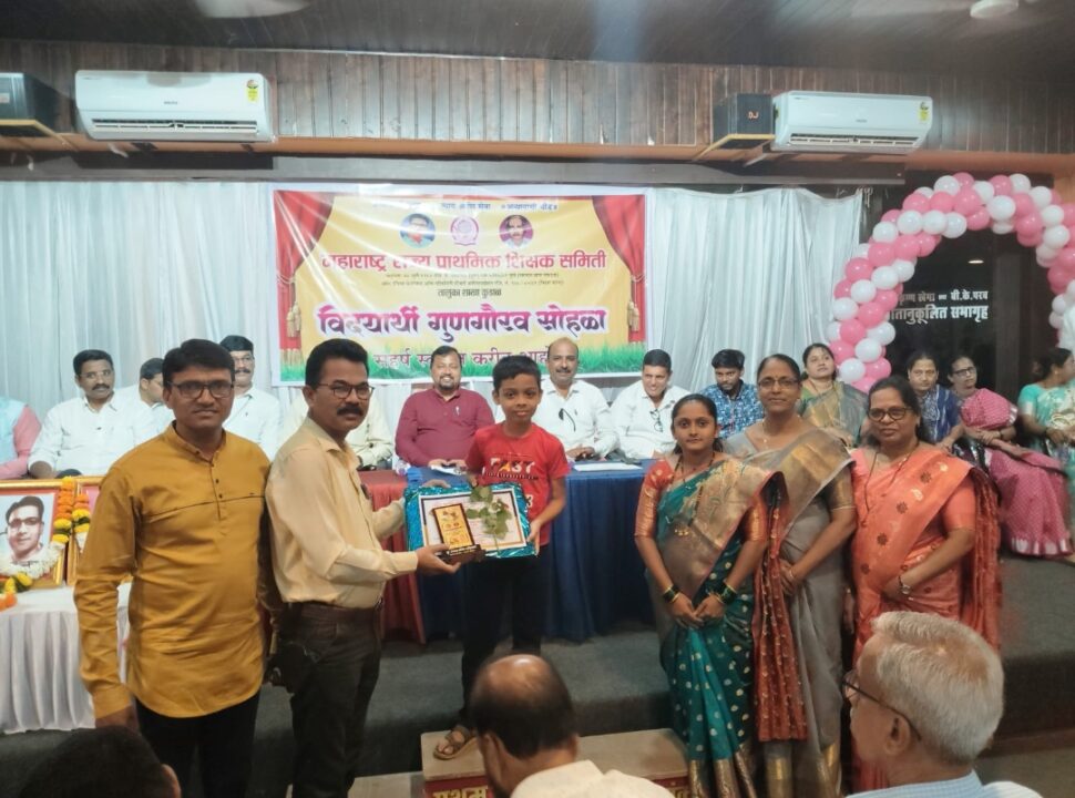 महाराष्ट्र राज्य प्राथमिक शिक्षक समिती, तालुका कुडाळ यांच्या वतीने विद्यार्थी गुणगौरव सोहळ्याचे आयोजन करण्यात आले होते. यावेळी तनिष सच्चिदानंद राऊळ या विद्यार्थ्याला गुणगौरव पुरस्काराने सन्मानित करण्यात आले. यावेळी विद्यार्थी, शिक्षक व पालक उपस्थित होते.