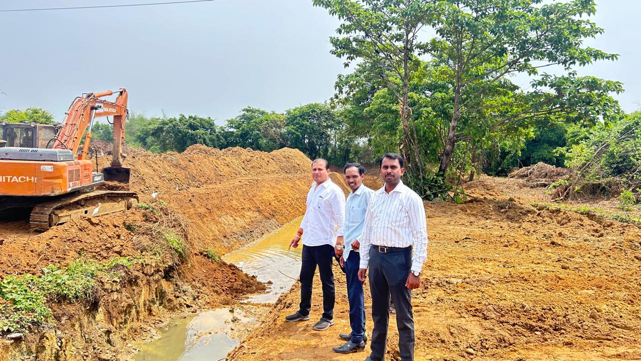 कुडाळ : नाम फाउंडेशनच्या माध्यमातून कुडाळ आंबेडकर नगर येथील भंगसाळ नदीतील गाळ उपसा करण्याचे काम सुरु आहे. या कामाचा शिवसेना उपजिल्हाप्रमुख आनंद शिरवलकर, नगरसेवक तथा गटनेते विलास कुडाळकर यांनी पाहणी करून आढावा घेतला. यावेळी कोकण सिंचनचे अभियंता भूषण नार्वेकर उपस्थित होते.