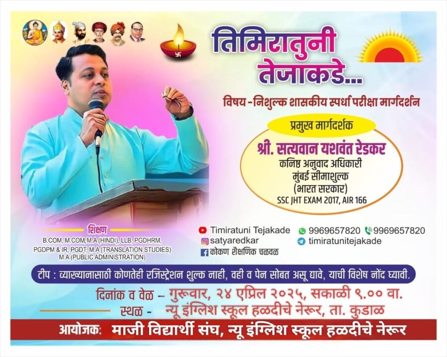 न्यू इंग्लिश स्कूल हळदीचे नेरूर, ता. कुडाळ येथे निःशुल्क शासकीय स्पर्धा परीक्षा मार्गदर्शन