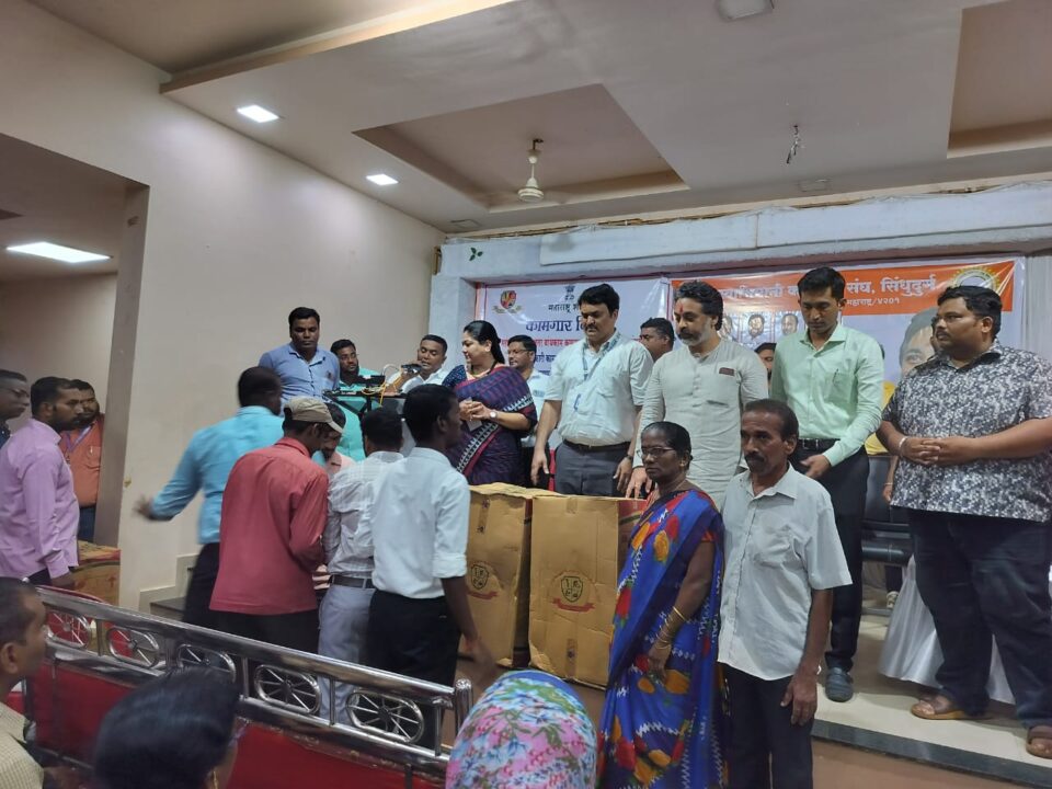 कुडाळ : महाराष्ट्र इमारत व इतर बांधकाम कामगार कल्याण मंडळांतर्गत नोंदणीकृत बांधकाम कामगारांना गृहपयोगी साहित्य संच वितरित करण्यासाठी कुडाळ येथे स्वाभिमानी कामगार संघटनेच्या माध्यमातून कार्यक्रमाचे आयोजन करण्यात आले होते. सदर कार्यक्रमास कुडाळ मालवणचे आमदार निलेश राणे, सहाय्यक कामगार आयुक्त संदेश आयरे, सरकारी कामगार अधिकारी अजिंक्य बावले, माजी जिल्हा परिषदेच्या अध्यक्षा दिपलक्ष्मी पडते,शिवसेना बांधकाम कामगार संघटनेचे सचिव मंगेश चव्हाण, संघटक अशोक बावलेकर, समन्वयक सतीश कदम आदी उपस्थित होते. स्वाभिमानी कामगार संघटनेचे संस्थापक अध्यक्ष प्रसाद गावडे यांनी मान्यवरांचे स्वागत करून मंडळाच्या विविध योजनांची माहिती देत मागील वर्षात कामगारांना कल्याणकारी योजनांच्या लाभाबाबत आढावा सादर केला. सहाय्यक कामगार आयुक्त संदेश आयरे यांनी मंडळ स्थापन झाल्यापासून सिंधुदुर्ग जिल्ह्यात झालेल्या कामाची आकडेवारी देत कामगारांनी मंडळाच्या विविध योजनांचा लाभ घेण्याचे आवाहन केले. अधिकाऱ्यांनी जास्तीत जास्त वेळ कामगारांच्या हितावह कार्यासाठी देण्याचे अधिकाऱ्यांना आवाहन करत कामगार कल्याणाच्या बाबींमध्ये कोणतीही तडजोड केली जाणार नसल्याची ग्वाही देत महायुती सरकारकडून योजनांचा “पाऊस” पाडला असून कामगारांनी सतर्क राहून योजनांचा लाभ घेण्याचे आवाहन केले. याशिवाय प्रसाद गावडेंच्या कामगार चळवळीतील कामाचं कौतुकही केले.कार्यक्रमाला जवळ पास 650 कामगारांनी हजेरी लावत उत्स्फूर्त प्रतिसाद दिला. 400 कामगारांना गृहपयोगी साहित्य संचाचे वाटप करण्यात आले व उर्वरित कामगारांना 23 व 24 मे रोजी साहित्य संच देण्याचे नियोजन करण्यात आल्याची माहिती सरकारी कामगार अधिकारी अजिंक्य बावले यांनी दिली.