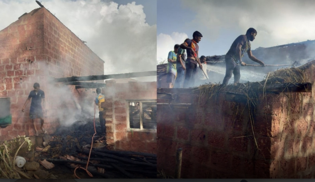 यावेळी सरपंच भीमराव भोसले, माजी सभापती अरविंद रावराणे, प्रकाश शेलार, पोलीस पाटील राजेंद्र रावराणे, तलाठी कडुलकर आदी उपस्थित होत्या. अग्निशमन बंब सोबत नगरपंचायतचे सचिन माइणकर, सुनील निकम, संदीप भोसले आदी उपस्थित होते. या दोन्ही गरीब शेतकऱ्यांना शासनाकडून नुकसान भरपाई मिळावी अशी मागणी आता केली जात आहे.